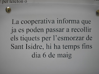 Quan comença el mes com cada any la Cooperativa Agrícola de La Bisbal ja penja el paper on convida a tot el poble aquest any a un esmorzar per al dia de Sant Isidre.
